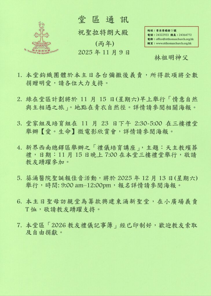 堂區通訊 2025-11-09
