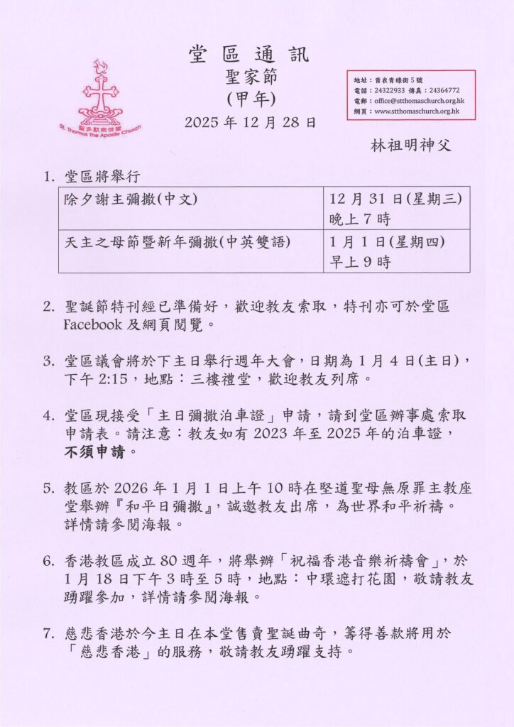 堂區通訊 2025-12-28