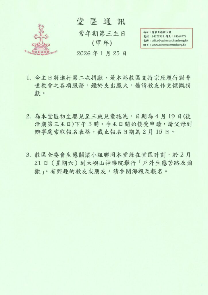 堂區通訊 2026-1-25